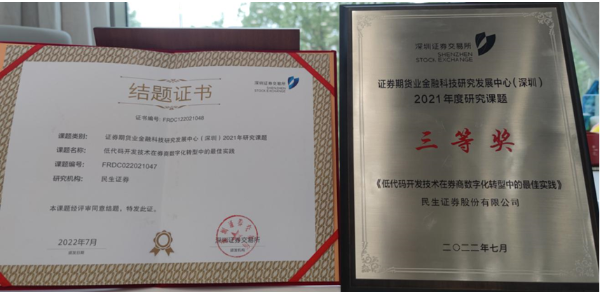 民生证券超自动化项目先后获评金融科技中心(深圳)优秀课题、计算机用户协会云应用分会优秀项目