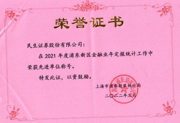 2022年9月,公司财务管理中心收到上海市浦东新区统计局颁发的《2021年度浦东新区金融业年定报先进单位》证书,对我司在上海统计报表填报工作中的表现给予肯定与鼓励。